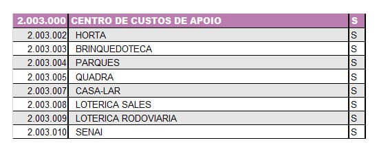Estender as contas neste caso, é literalmente expandir e identificar os departamentos e setores que as contas monitoram. Sendo assim, vamos criar os subgrupos de cada centro.
