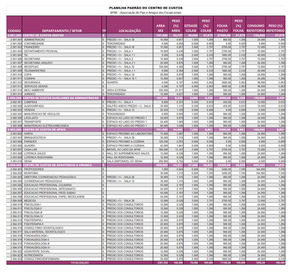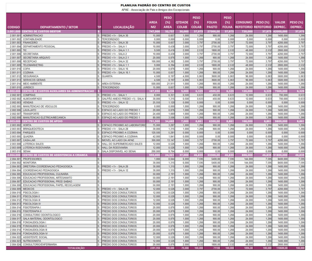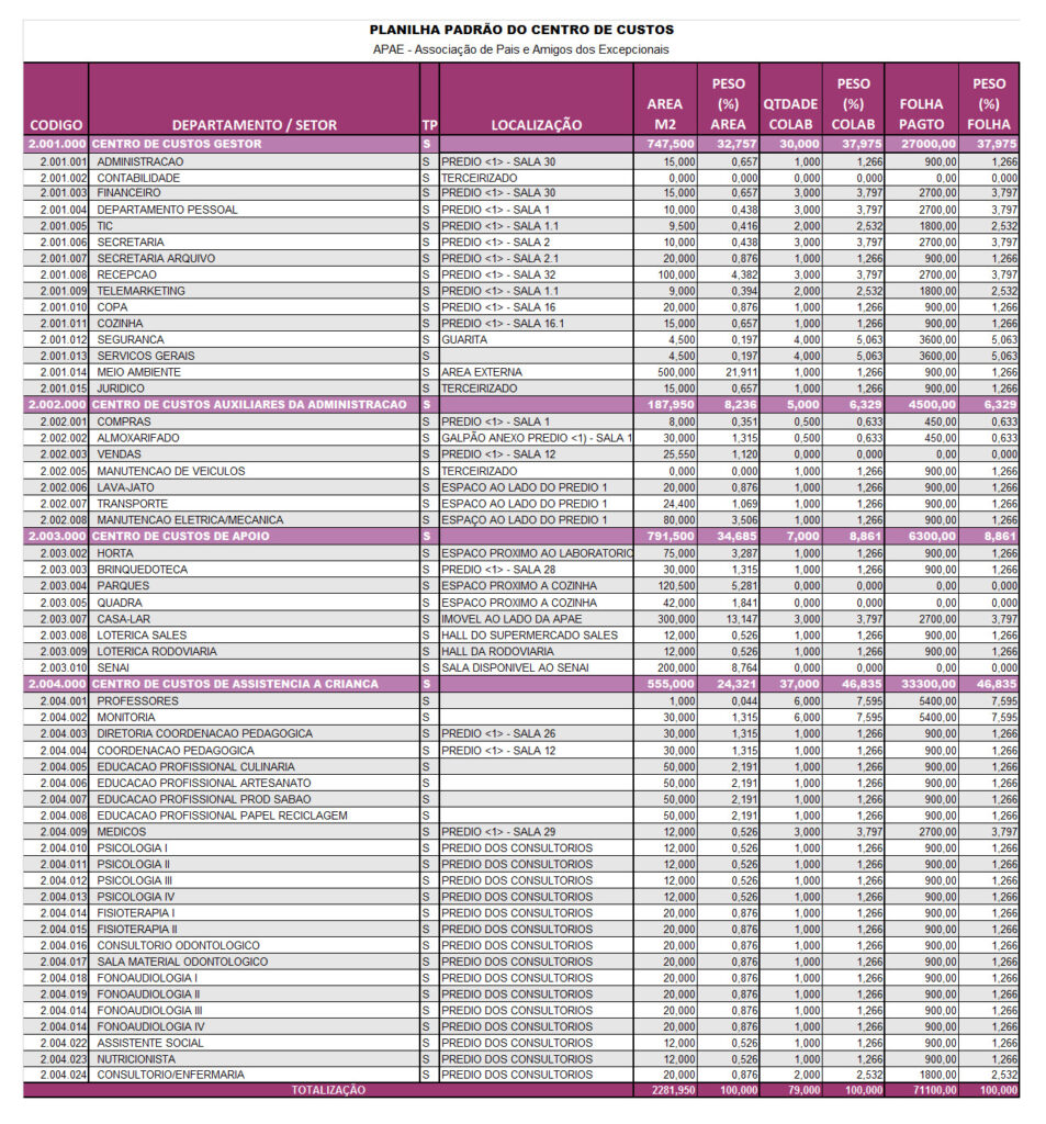Lembre-se sempre! Nossa planilha deve ser dinâmica, portanto, sabemos que ela nos permite controlar não somente estas despesas, mas, a qualquer momento você poderá inserir mais colunas ou linhas e tornar sua planilha cada vez mais analítica. Os centros inseridos nesta planilha poderão ser realocados conforme a necessidade da informação. No momento vamos encerrar este artigo e preparar para outra etapa do processo.